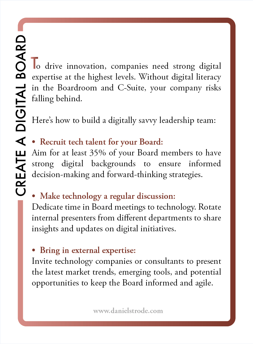 From culture audits and innovation design to long-term transformation journeys, you’ll get access to Daniel’s expert network and team who can deliver any project end-to-end and proven strategic tools.